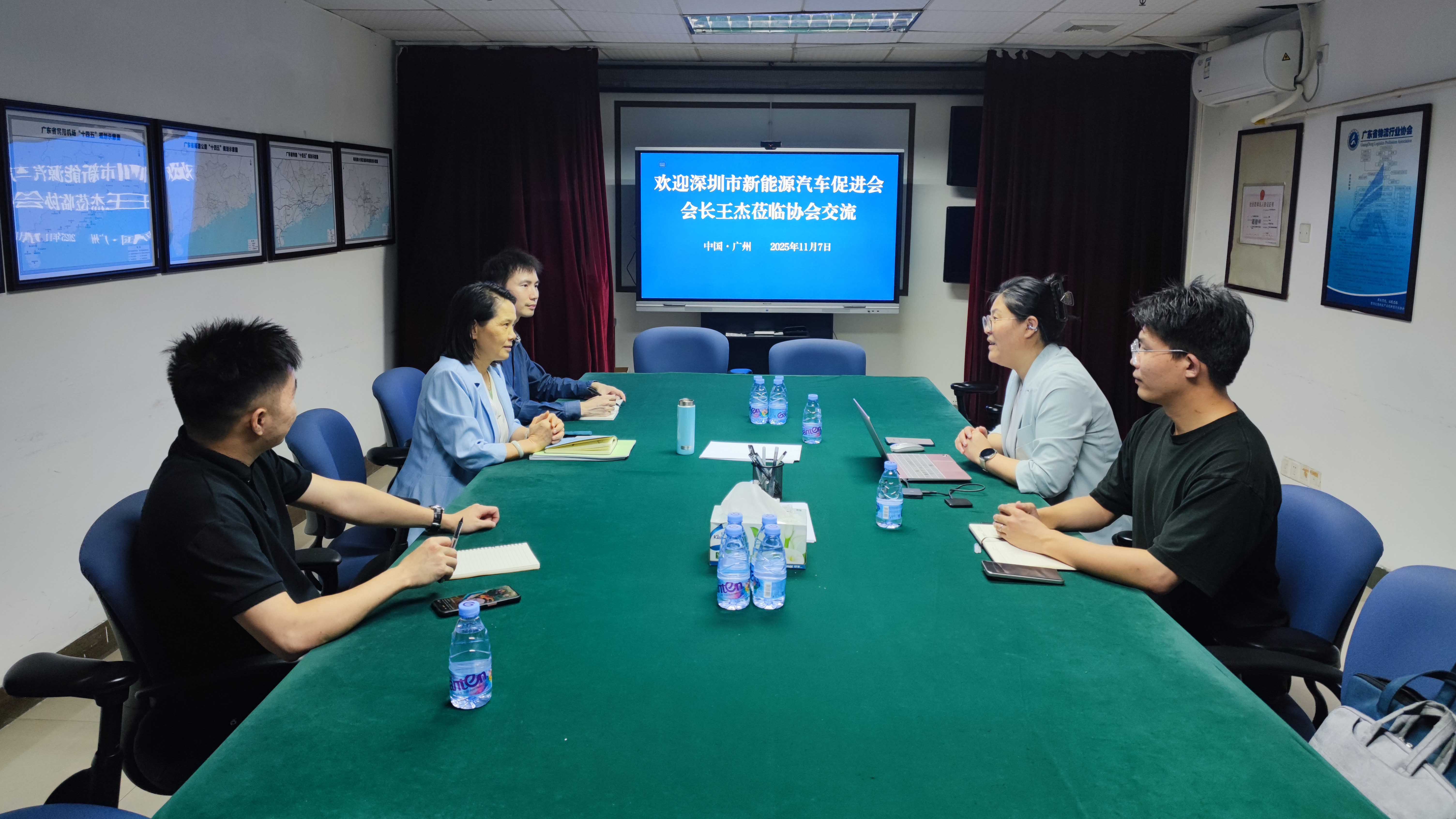 11月7日,深圳市新能源汽车促进会会长王杰一行到访协会交流,受到协会秘书长胡梅的热情接待。