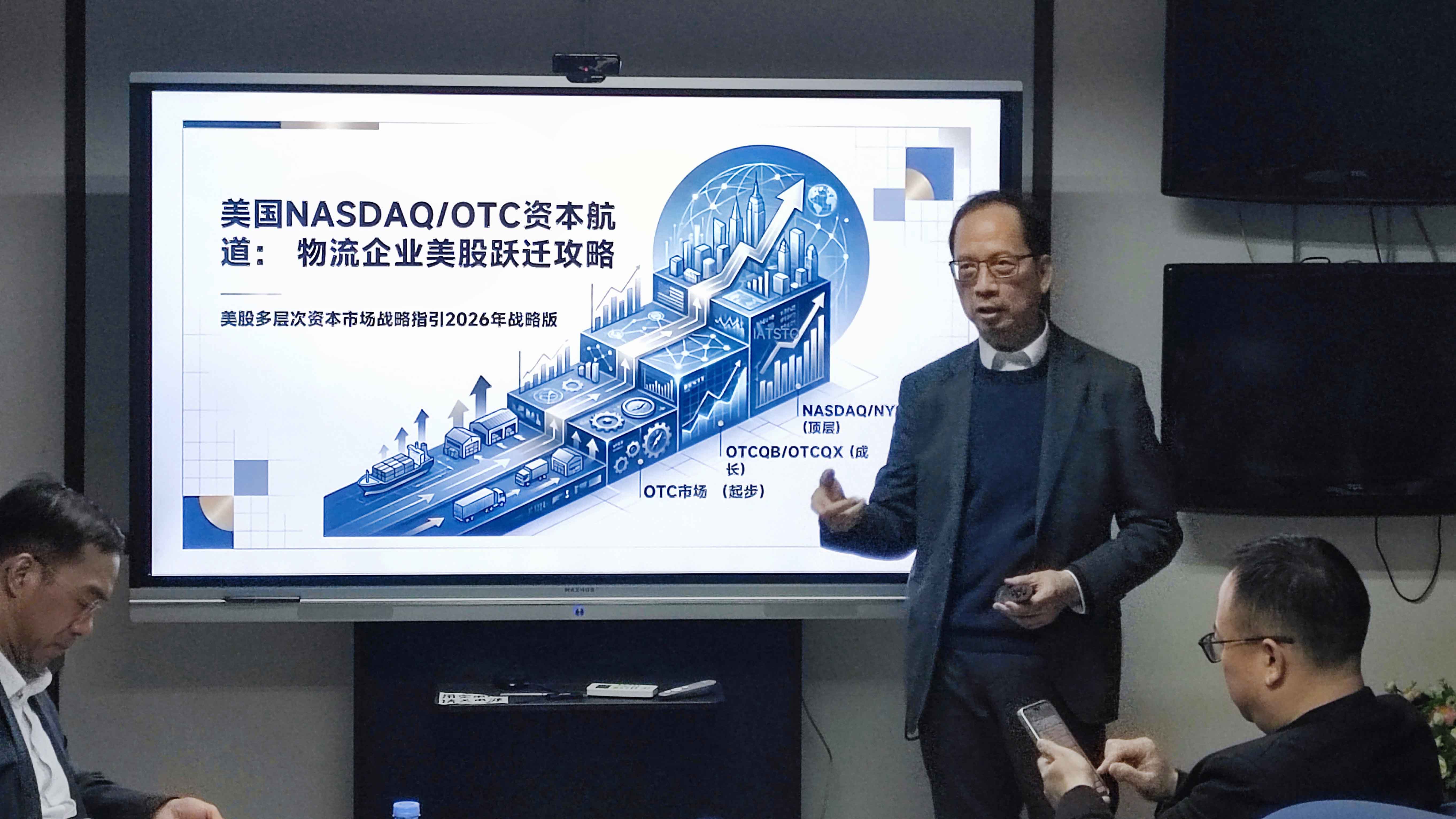 隆安律师事务所管理合伙人林靖寰律师围绕“物流企业赴美上市路径”作专题分享。他系统梳理了美国NASDAQ及OTC市场的准入机制、合规要求与典型操作流程,并详细解读了物流企业如何借助美股资本市场实现国际化融资与品牌升级。