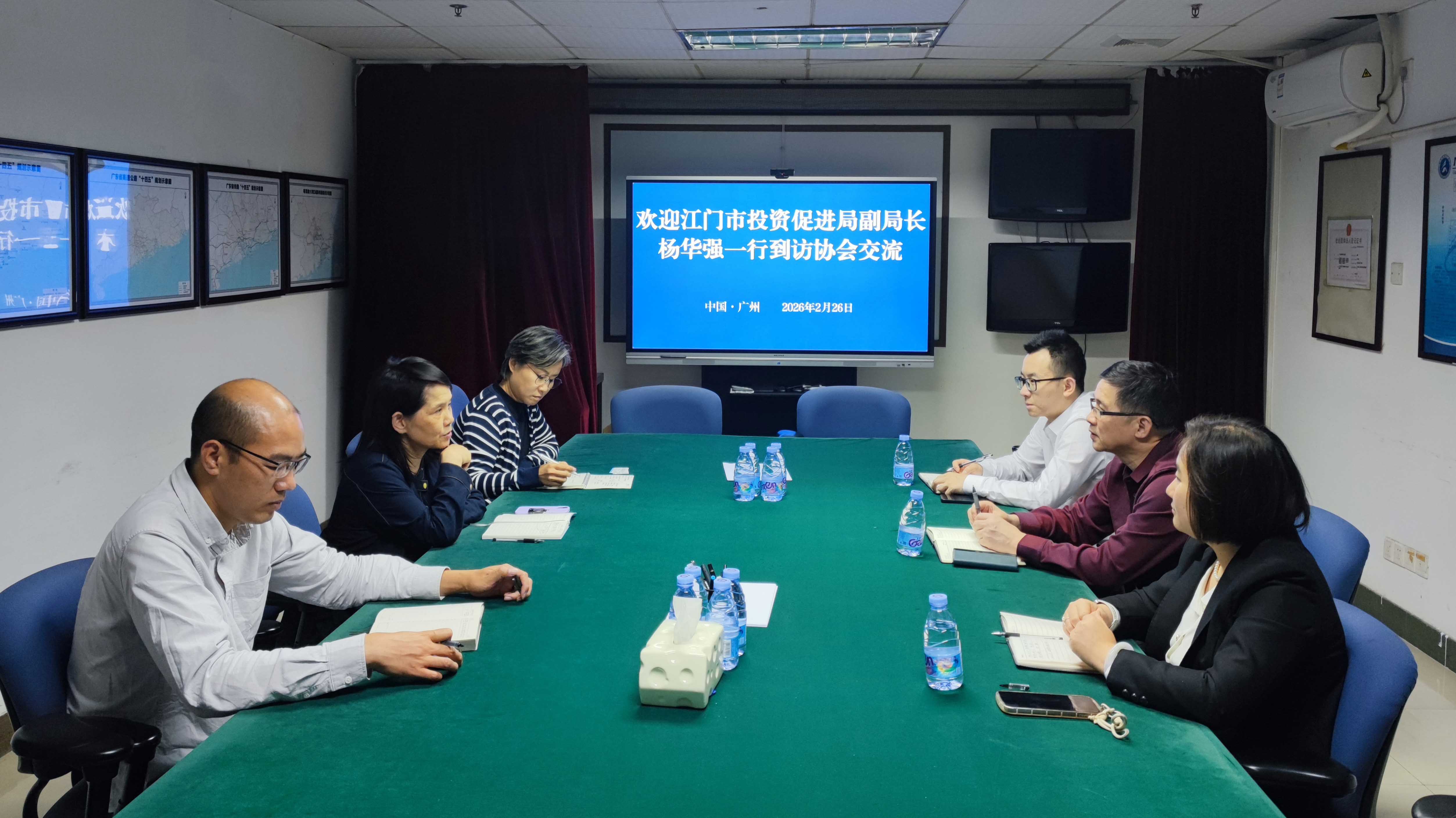 2月26日,江门市投资促进局副局长杨华强一行到访协会交流,受到协会秘书长胡梅的热情接待。
