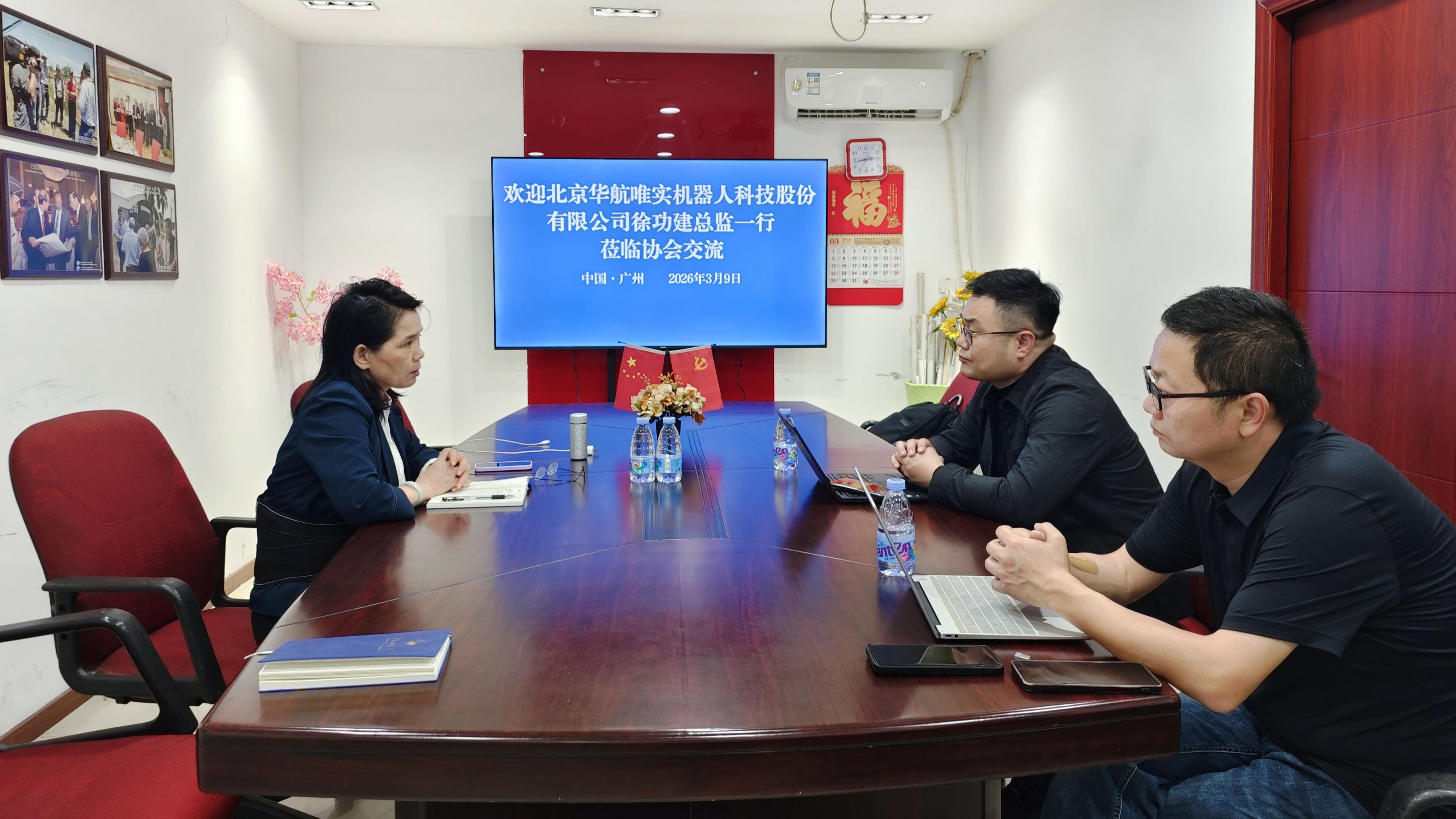 3月9日,副会长单位北京华航唯实机器人科技股份有限公司物流产品总监徐功建一行到访协会,受到协会秘书长胡梅的热情接待。双方围绕物流技术发展、产教融合、行业人才培养等议题进行了深入交流。