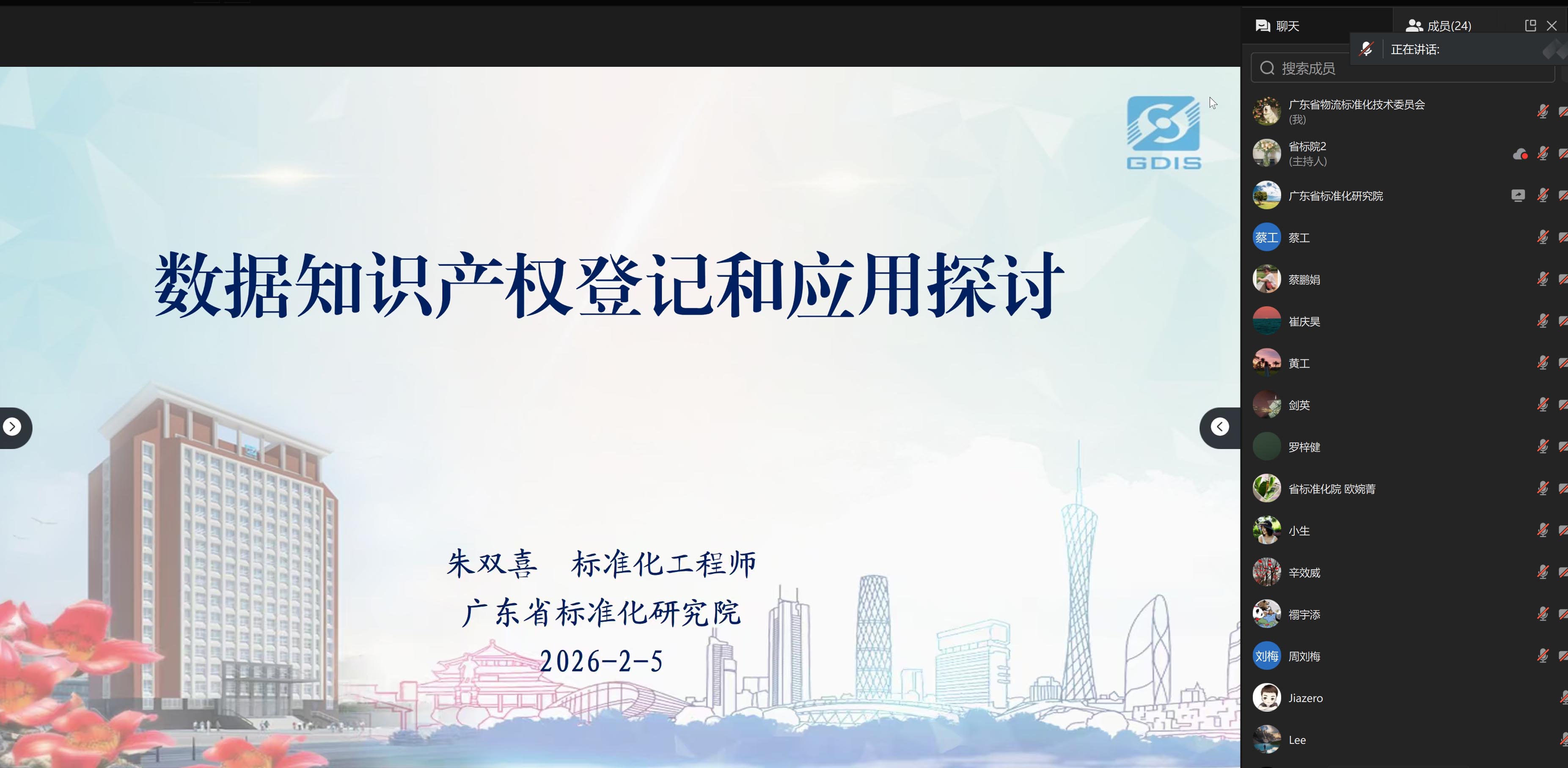 2月5日,广东省物流标准化技术委员会组织委员通过视频会议的形式参加广东省标准化研究院主办的数据知识产权登记推广培训活动。此次培训旨在提升与会会员对数据知识产权的理解及其在实际业务中的应用能力。